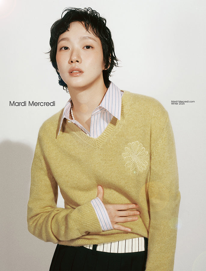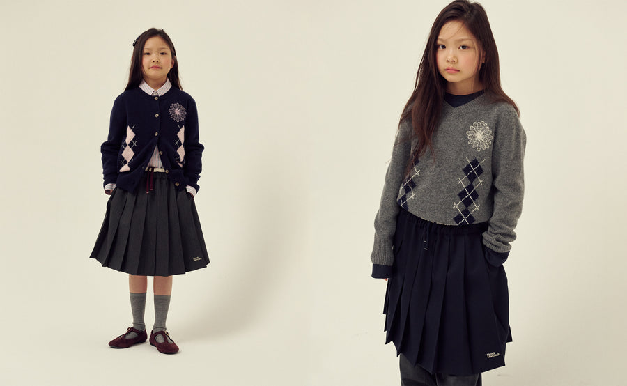 KIDS CASHMERE BLENDED V NECK ARGYLE_GREY CREAM