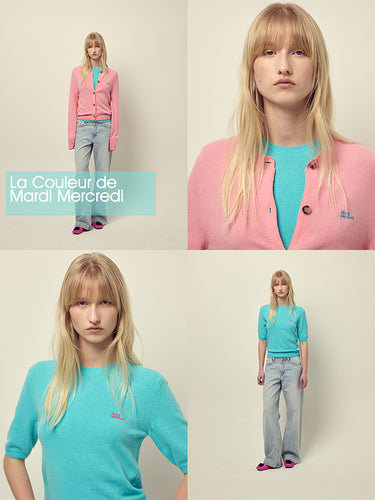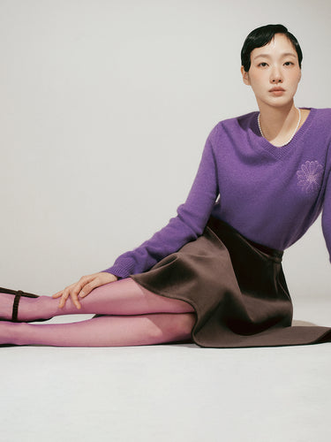 KIDS CASHMERE BLENDED V NECK ARGYLE_BURGUNDY MINT