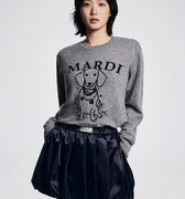CASHMERE CREW NECK SWING THE TAIL DDANJI PEARL NECKLACE_GREY BLACK