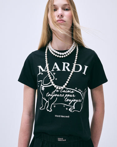 SLIM TSHIRT SWING THE TAIL DDANJI FLOWER CHOKER_BLACK IVORY