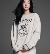 SWEATSHIRT SWING THE TAIL DDANJI PEARL NECKLACE_OATMEAL BLACK
