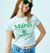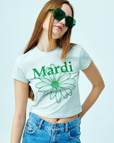CROPPED TSHIRT FLOWERMARDI_LIGHTBEIGE GREEN