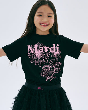 KIDS TSHIRT TRIPLE FLOWER_BLACK PINK