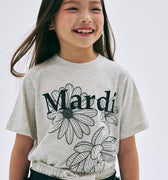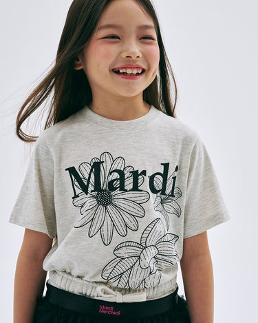 KIDS TSHIRT TRIPLE FLOWER_OATMEAL BLACK