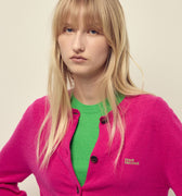 CASHMERE BLENDED CARDIGAN ROUND NECK ESSENTIAL_FUCHSIA
