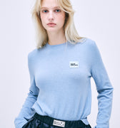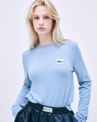 CASHMERE BLENDED ROUND NECK SQUARE LOGO_BLUE