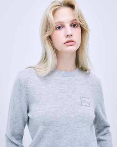 CASHMERE BLENDED ROUND NECK SQUARE LOGO_GREY