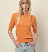 CASHMERE BLENDED TOP SHORT SLEEVE ESSENTIAL_ORANGE