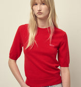 CASHMERE BLENDED TOP SHORT SLEEVE ESSENTIAL_RED