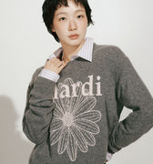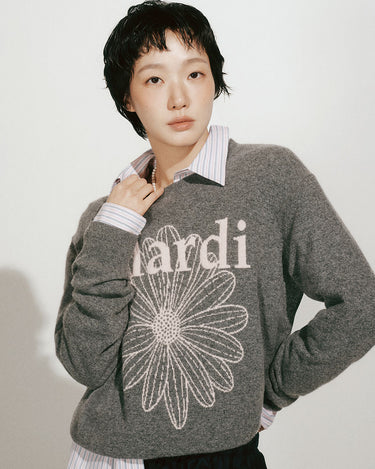 CASHMERE CREW NECK FLOWERMARDI_DEEPGREY PINK