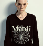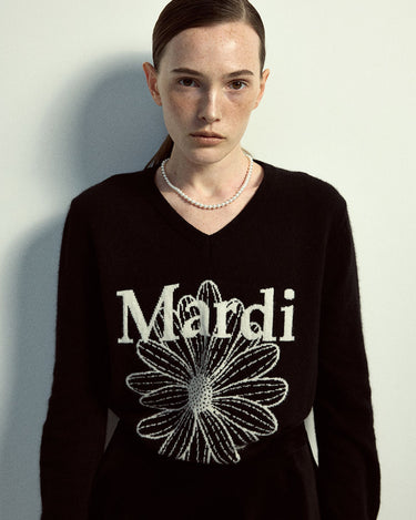 CASHMERE V NECK FLOWERMARDI_BLACK IVORY