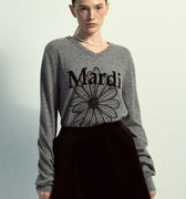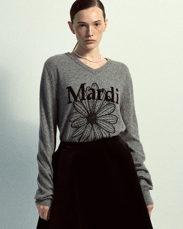 CASHMERE V NECK FLOWERMARDI_GREY BLACK