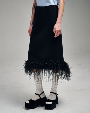 COTTON OSTRICH SKIRT_BLACK