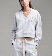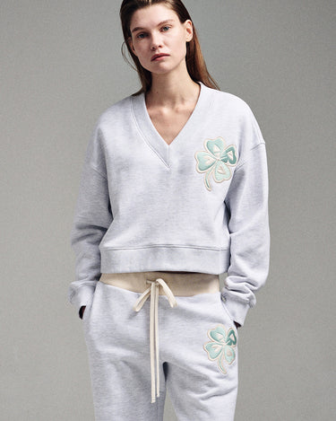 CROPPED SWEATSHIRT V NECK CLOVERMARDI SATIN_HEATHER