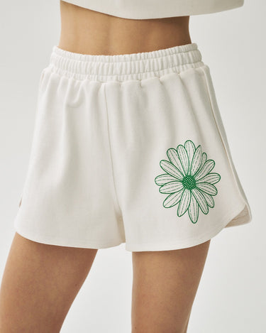 MINI SWEAT SHORTS FLOWER_WHITE GREEN