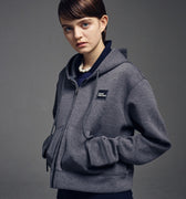 NEOPRENE CROPPED HOODY ZIP UP_CHARCOAL