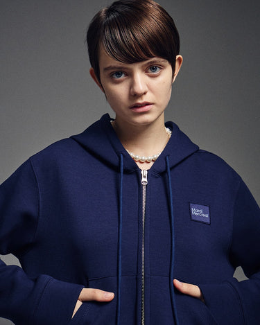 NEOPRENE CROPPED HOODY ZIP UP_NAVY