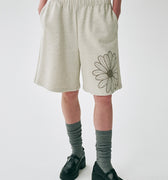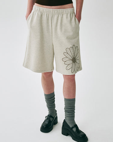 OVERSIZED SWEAT BERMUDA FLOWER_OATMEAL TAUPE