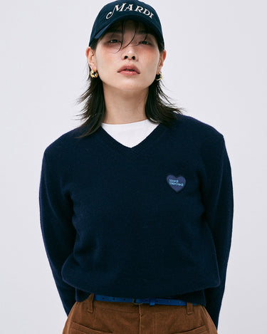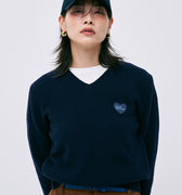 RACCOON BLENDED V NECK HEART LOGO_NAVY