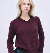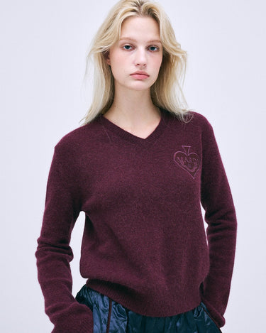 RACCOON BLENDED V NECK SATIN SPADE_BURGUNDY