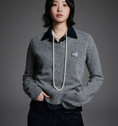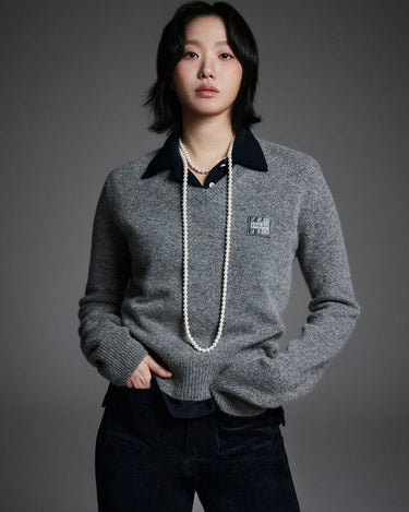 RACCOON BLENDED V NECK SQUARE LOGO_CHARCOAL