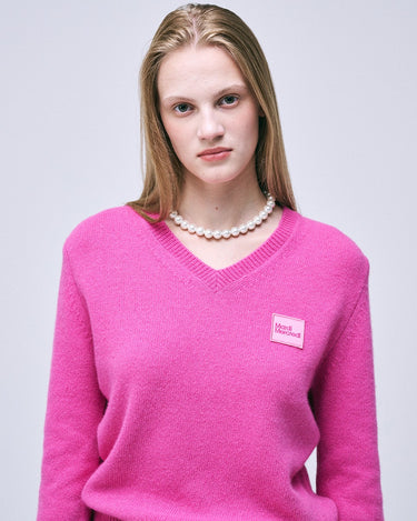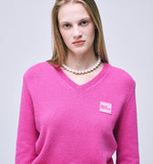 RACCOON BLENDED V NECK SQUARE LOGO_FUCHSIA