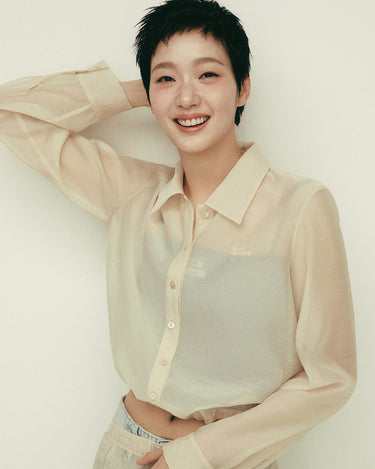 SHEER CROPPED BLOUSE STRING_CREAM