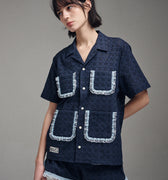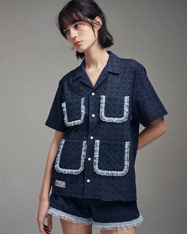 SHIRT HALF SLEEVE EYELET FRILL_NAVY