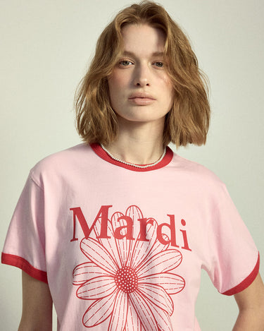 SLIM RINGER TSHIRT FLOWERMARDI_LIGHTPINK RED