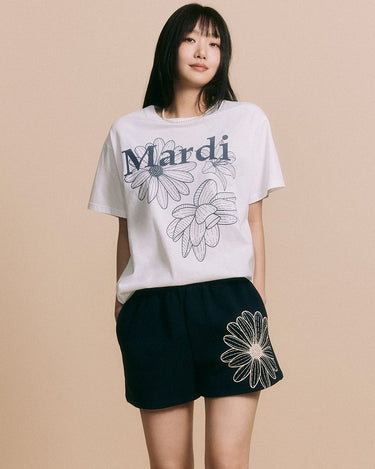 SWEAT SHORTS FLOWER_NAVY CREAM