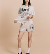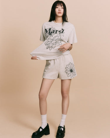 SWEAT SHORTS FLOWER_OATMEAL BLACK
