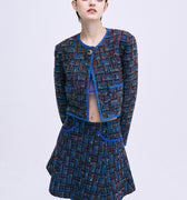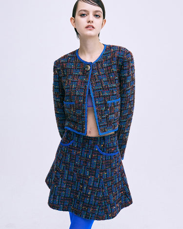 TWEED CROPPED JACKET ROUND NECK_PURPLE