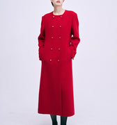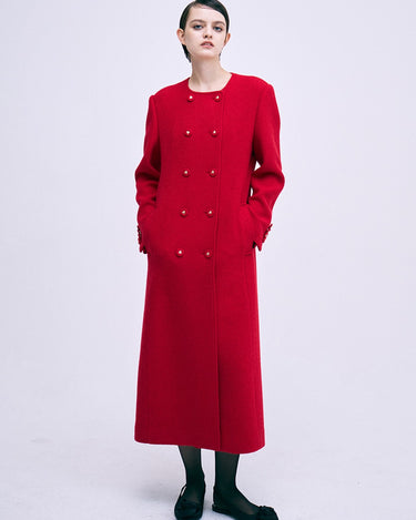 WOOL SINGLE MAXI COAT COLLARLESS_RED
