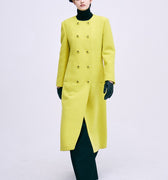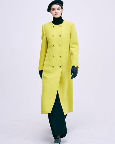 WOOL SINGLE MAXI COAT COLLARLESS_YELLOW