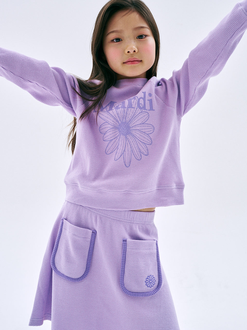 KIDS WAFFLE RAGLAN SWEATSHIRT FLOWERMARDI_PURPLE LILAC