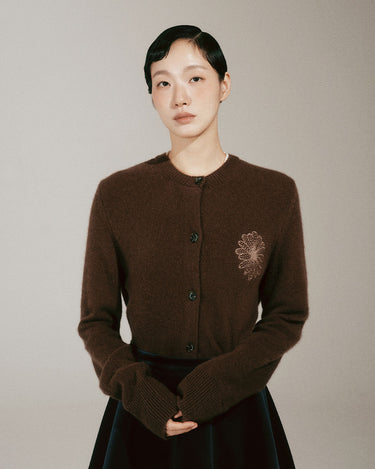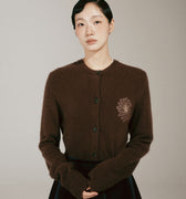 RACCOON BLENDED CARDIGAN ROUND NECK_BROWN BEIGE