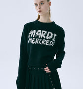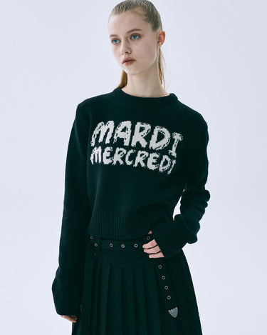 CASHMERE CROPPED ROUND NECK BRUSH LOGO CONTRAST_BLACK IVORY
