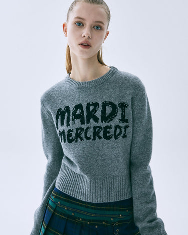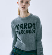 CASHMERE CROPPED ROUND NECK BRUSH LOGO CONTRAST_GREY BLACK