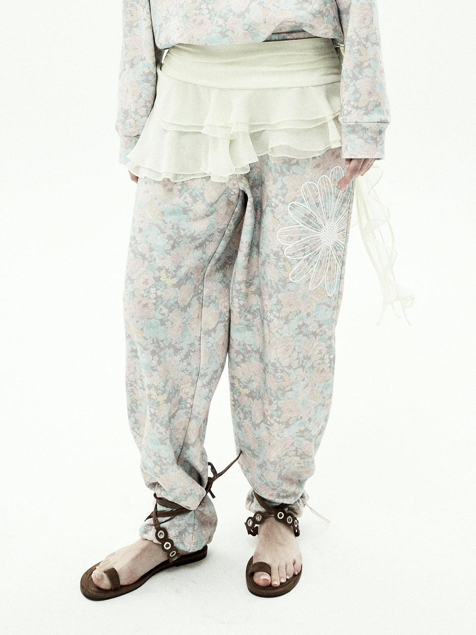 JOGGER PANTS FLEUR FLOWER_INDIPINK WHITE