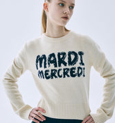 CASHMERE CROPPED ROUND NECK BRUSH LOGO CONTRAST_CREAM NAVY