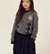KIDS CASHMERE BLENDED V NECK ARGYLE_GREY CREAM