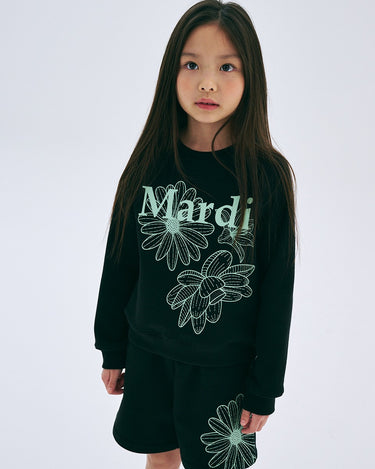 KIDS SWEATSHIRT TRIPLE FLOWER_BLACK MINT