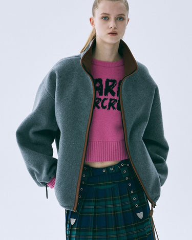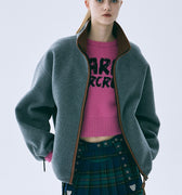 LEATHER TRIM FLEECE JACKET_CHARCOAL