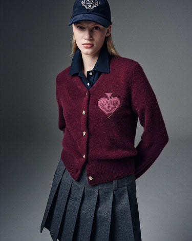 RACCOON BLENDED CARDIGAN V NECK SPADE_BURGUNDY