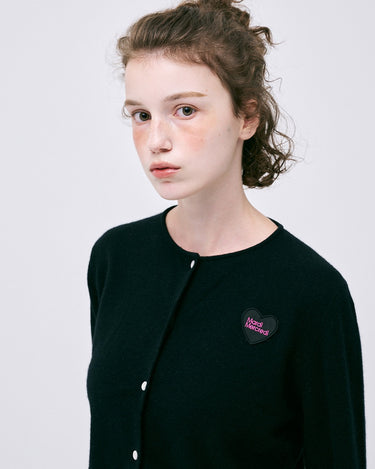 RACCOON BLENDED CROPPED CARDIGAN HEART LOGO_BLACK