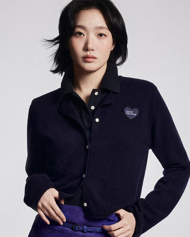 RACCOON BLENDED CROPPED CARDIGAN HEART LOGO_NAVY