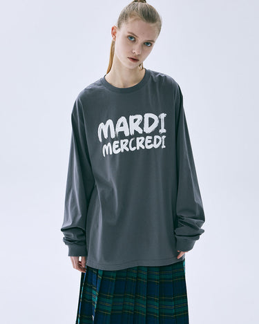 UNISEX TSHIRT LONG SLEEVE BRUSH LOGO CONTRAST_CHARCOAL WHITE